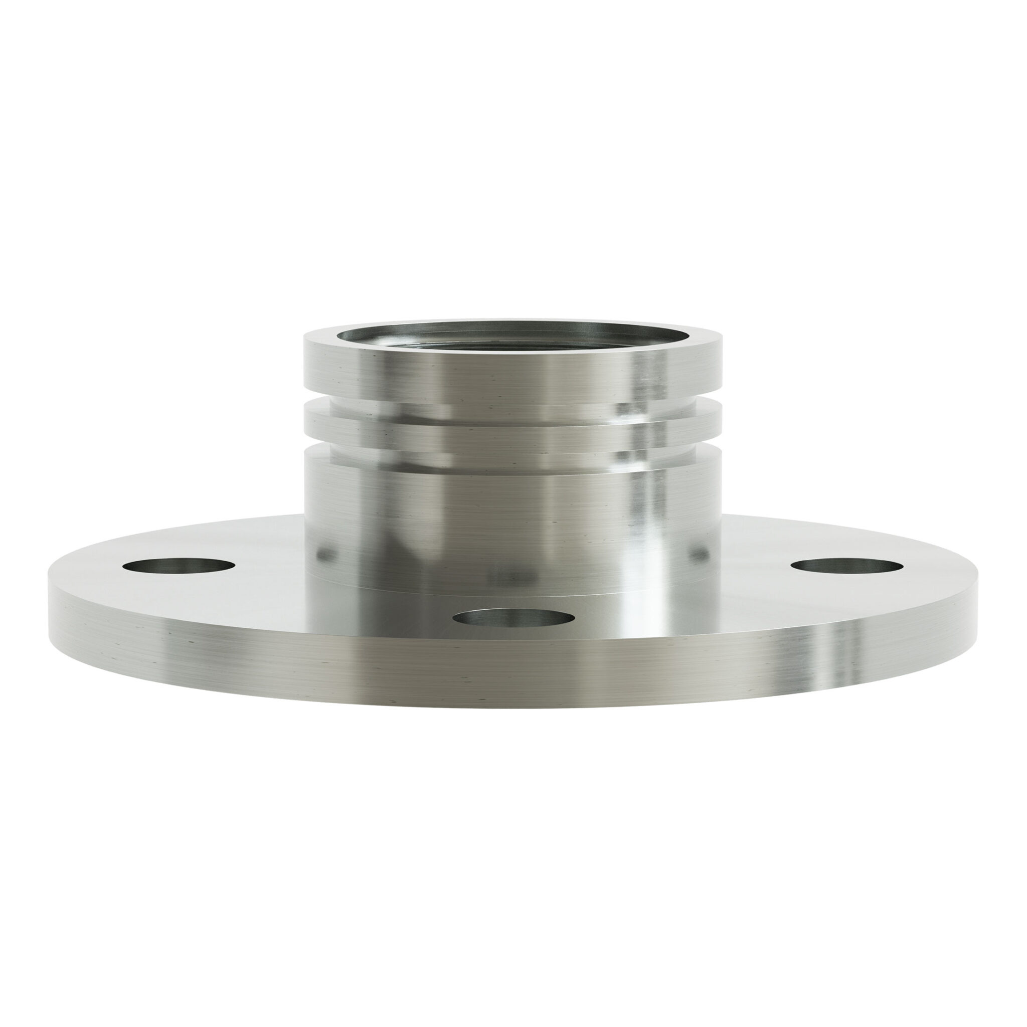 The flange adapter FA 3 G made of stainless steel with four fixing holes for M 10 according to DIN 2573 , suitable for