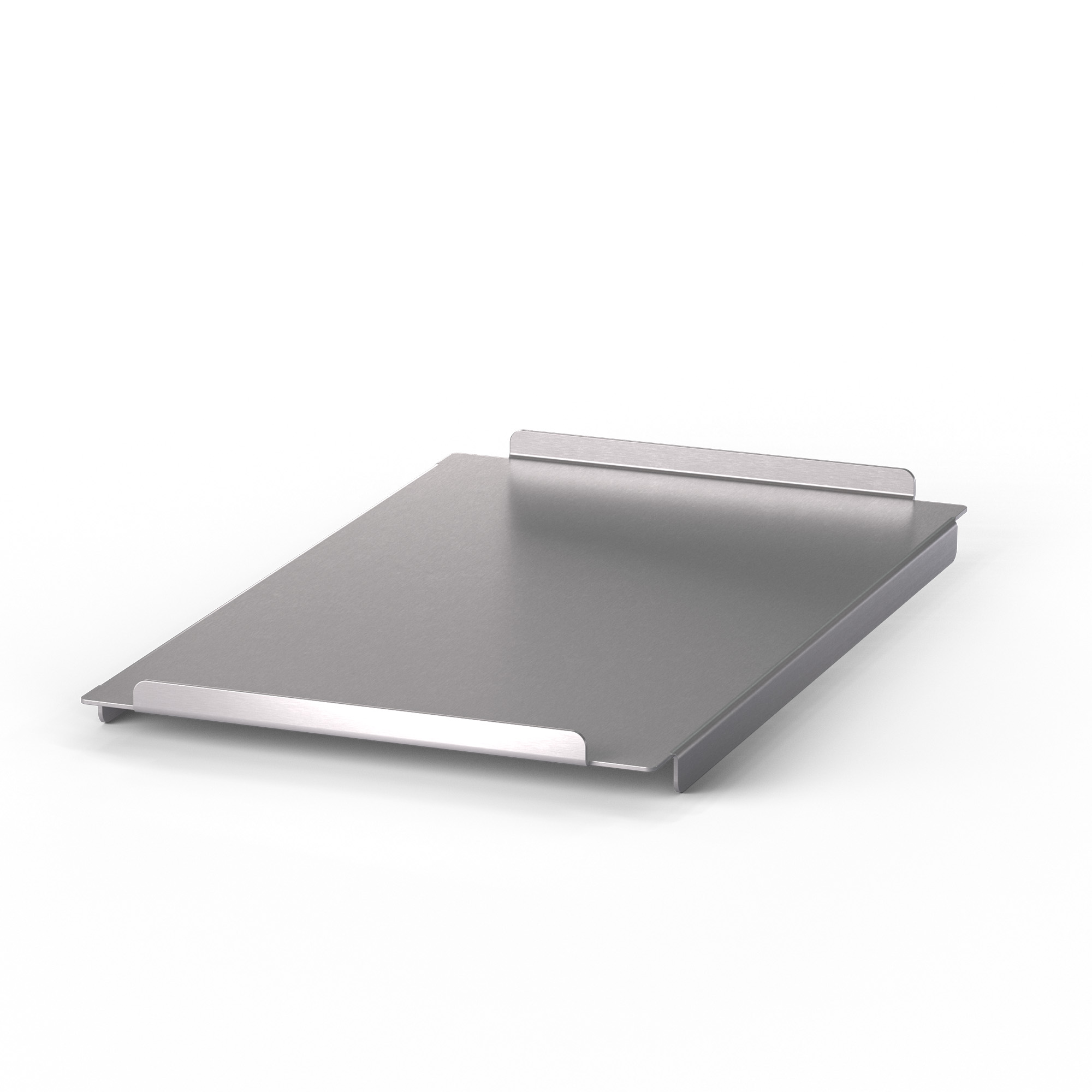A stainless steel drip tray is used to cover the space between two SONOREX TECHNIK ultrasonic baths standing next to each other.