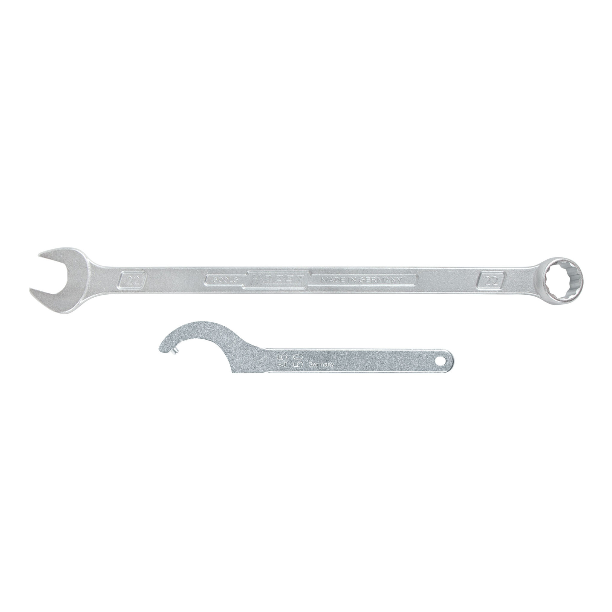 Set di utensili composto da chiave a gancio per il fissaggio del trasduttore a ultrasuoni e da chiave aperta per il montaggio professionale delle sonde e dei dischi in titanio.