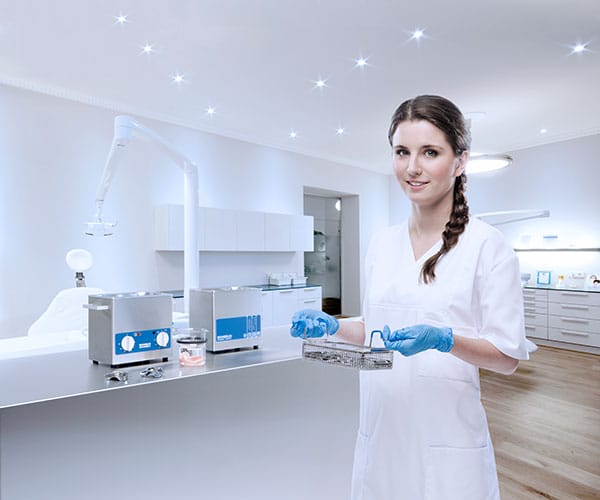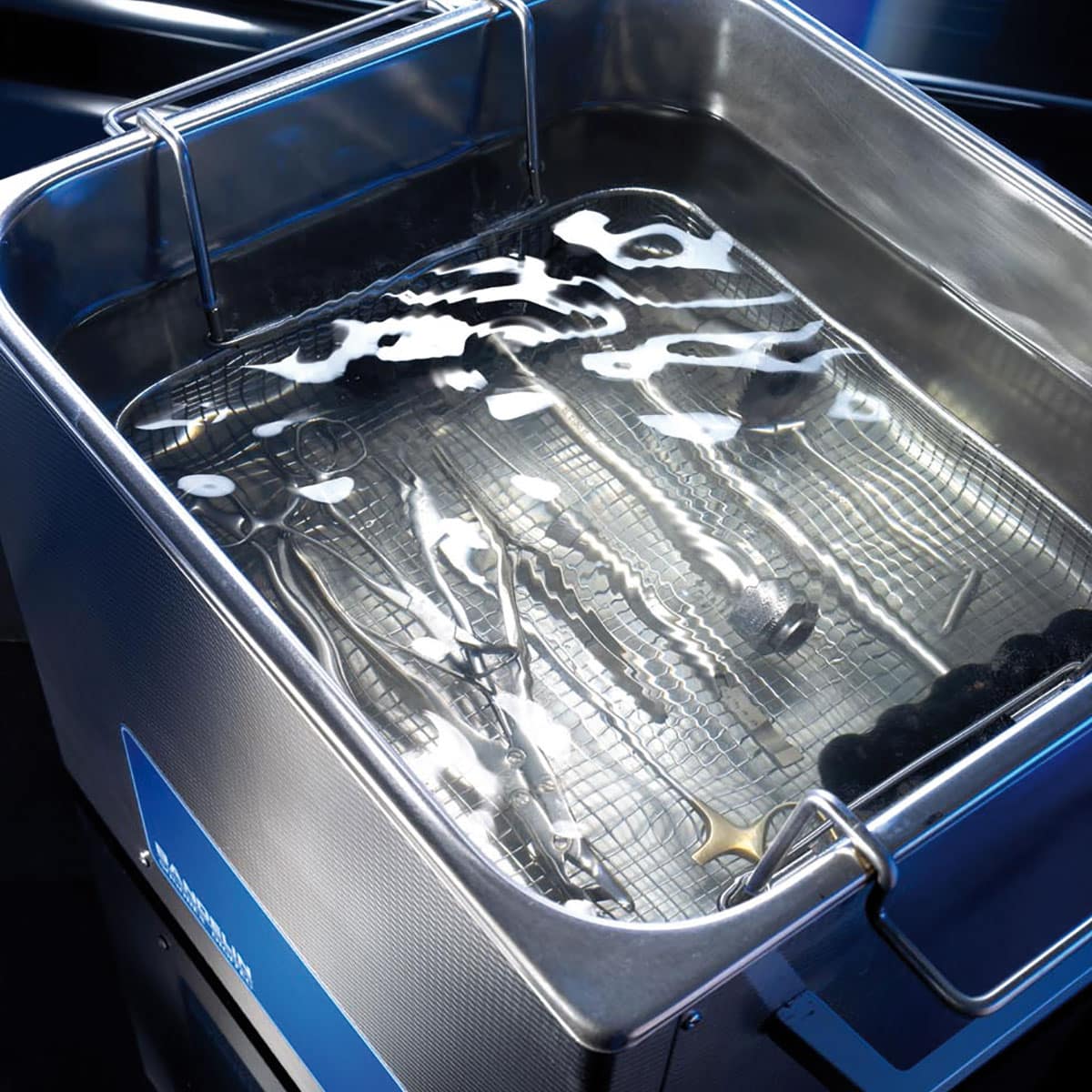 Für eine optimal abgestimmte Ultraschallreinigung sind passende Körbe, Deckel und Reinigungs- und Desinfektionskonzentrate als Zubehör erhältlich